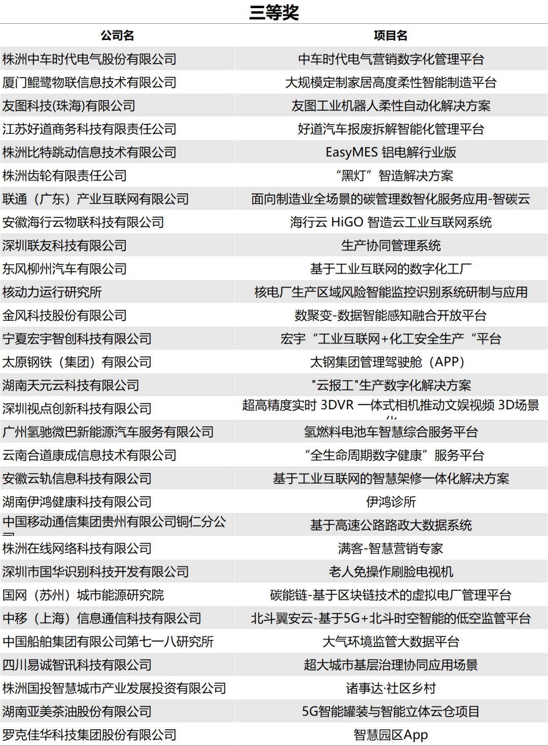 以下是获奖名单: